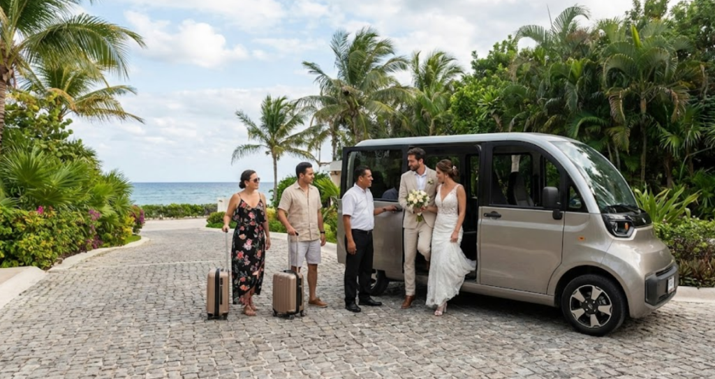 La logística para bodas de destino en la Riviera Maya: Logística para invitados a menudo implica traslados internos (del hotel a la ceremonia). Caribbean Transfers ofrece servicio de “Open Service” (renta por horas) para mover a tus invitados del resort al lugar de la fiesta y regresarlos de forma segura en la madrugada.